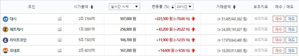 대시, 제트캐시, 모네로 다크코인 3대장들 펌핑되고 있습니다!! ㄷㄷㄷㄷ