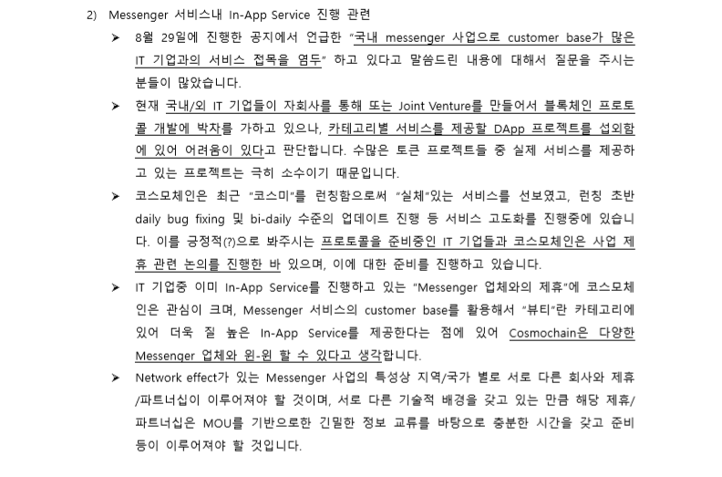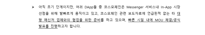 대형 메신저 업체와의 협업을 위한 준비중 - 곧 MOU소식 나올 예정