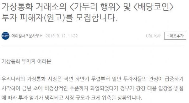 법무법인 에이원(대표 변호사 이경현)은 암호화폐 거래소 '캐셔레스트'를 운영하고 있는 법인 '뉴링크'를 상대로 손해배상 선행소송을 5일 서울중앙지방법원에 제출했다고 밝혔다.