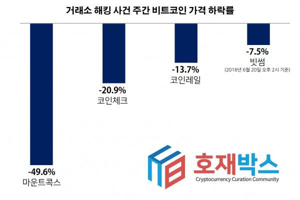 거래소 해킹 사건이 있었던 당시 주간 비트코인 가격률은 아래와 같았습니다.