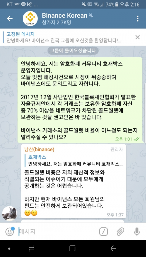 ?회사 내부사정과 보안 관련 이슈 때문인지 빗썸, 업비트, 바이낸스는 콜드월렛 비율을 알려줄 수 없다고 합니다.