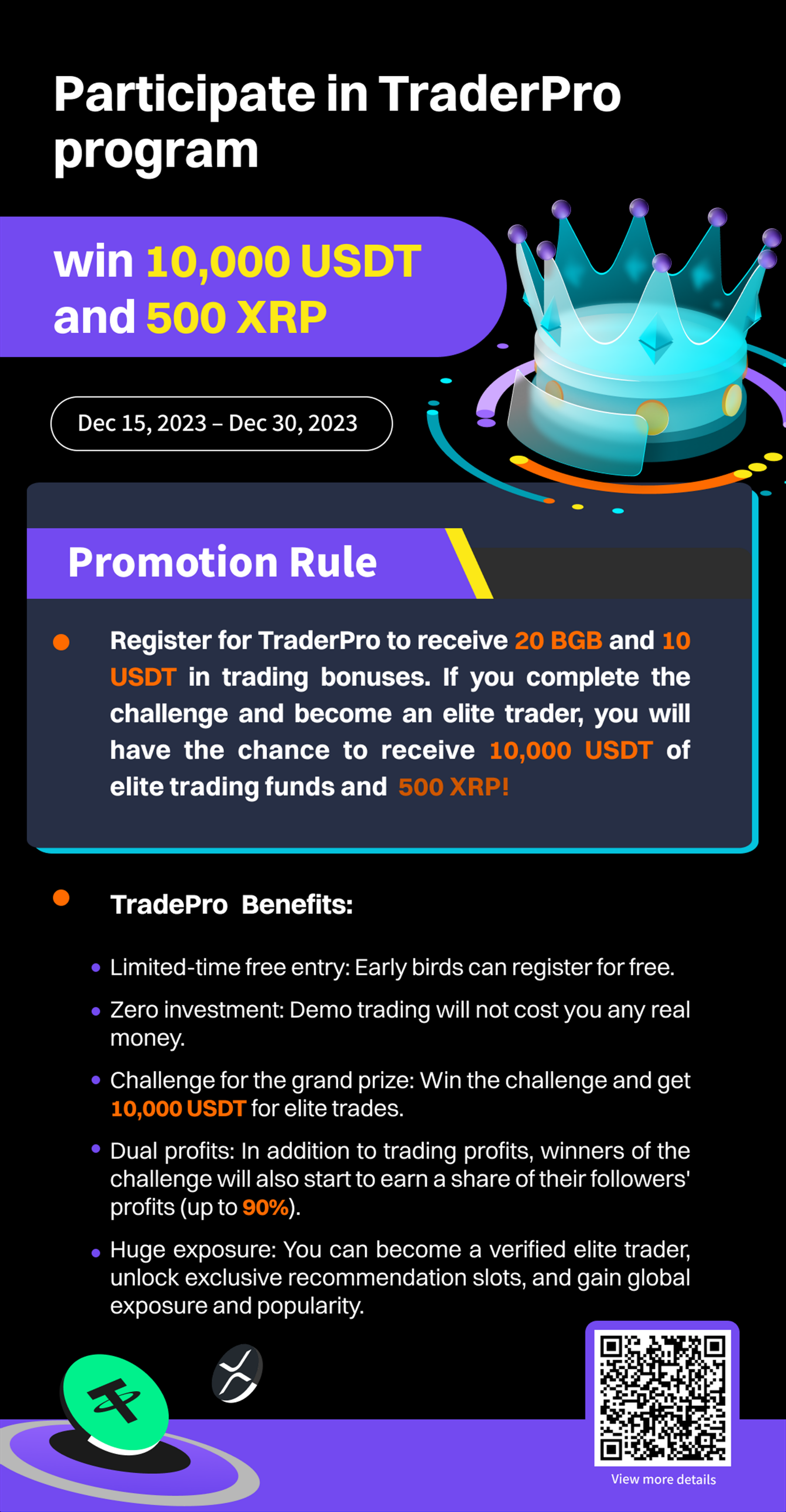 Participate in Bitget TraderPro, win 10,000 USDT and 500 XRP!