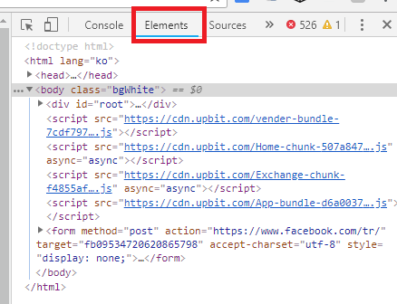 키보드 <F12> 누른 후 오른쪽 창에서 Elements 선택