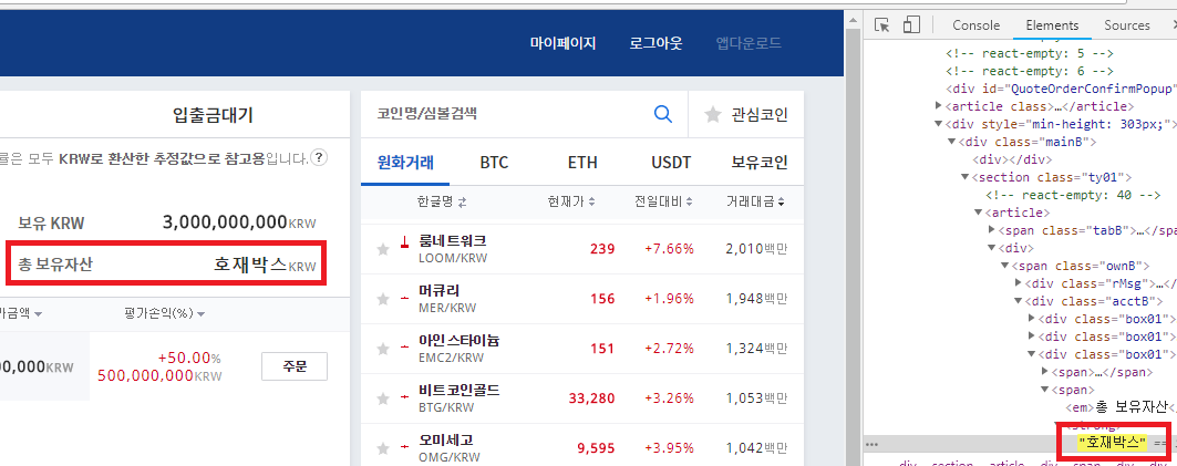 키보드에서 Ctrl + F 누르기 -> 총 보유자산에 해당하는 금액으로 검색