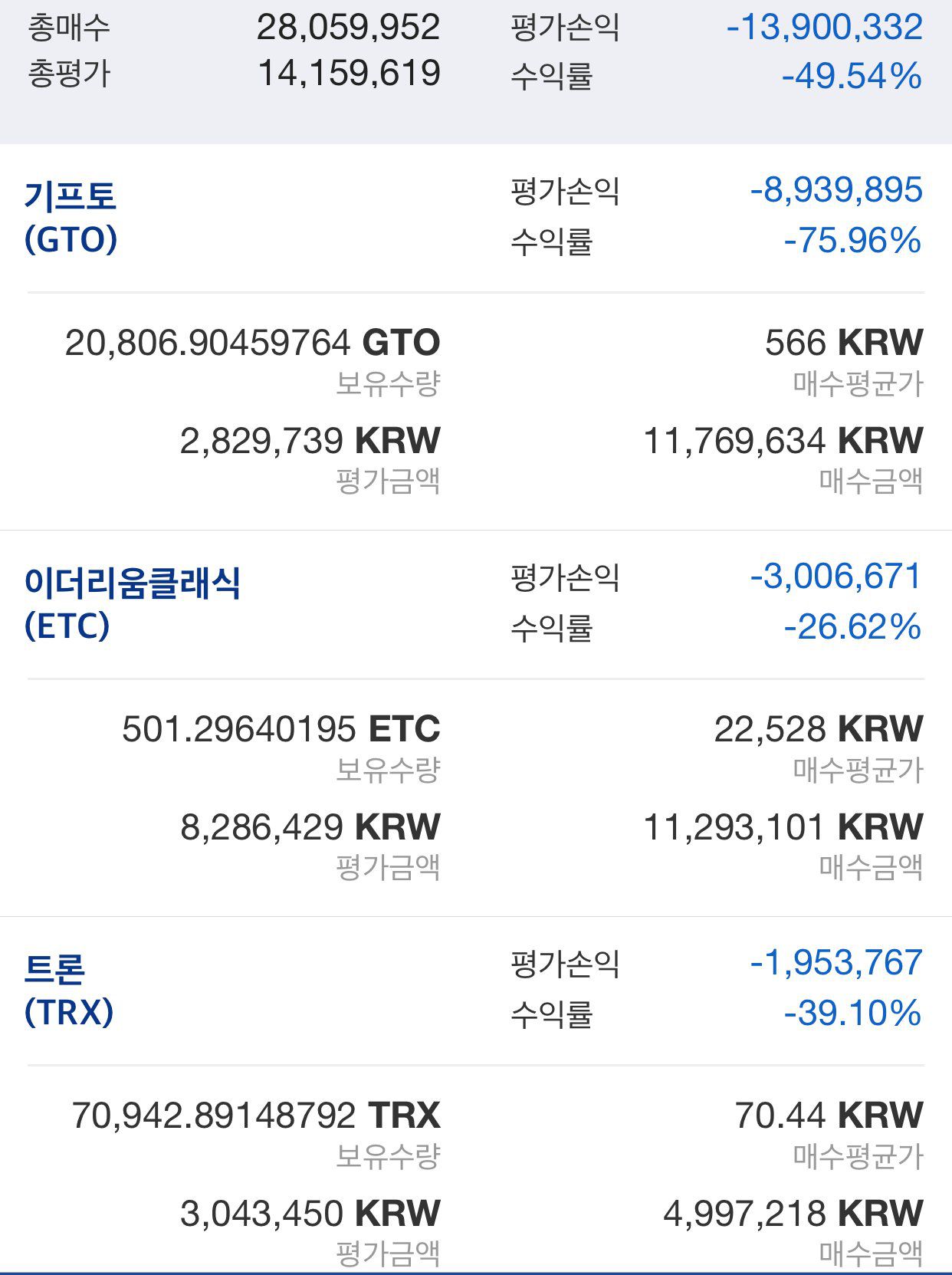 존버는 우량 코인 위주로 해야한다는 교훈을 다시 얻습니다..