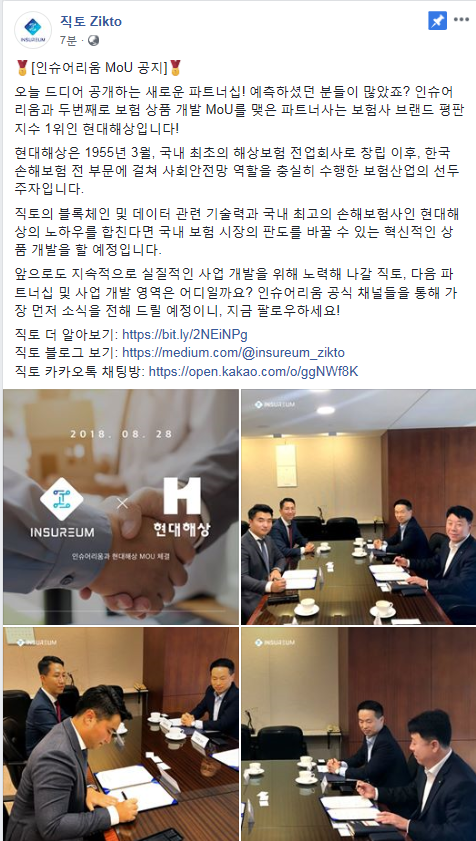 AXA와 오늘3시 현대해상과 MOU가 체결되어있고 앞으로 한군데 더 세번째 MOU체결예정 간략히 소개하자면