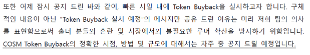모코인 바이백한다고 홍보해서 가격 많이 오른거 알지? 그래봤자 코스모보다 작은 규모였어.