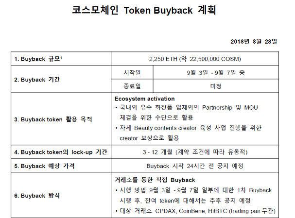 홀더들이 가격이 계속 떨어져서 불안해하니까 1주일 앞당겨서 바이백 시행하고 결과까지 공지했다. 1차로 시행한 바이백은