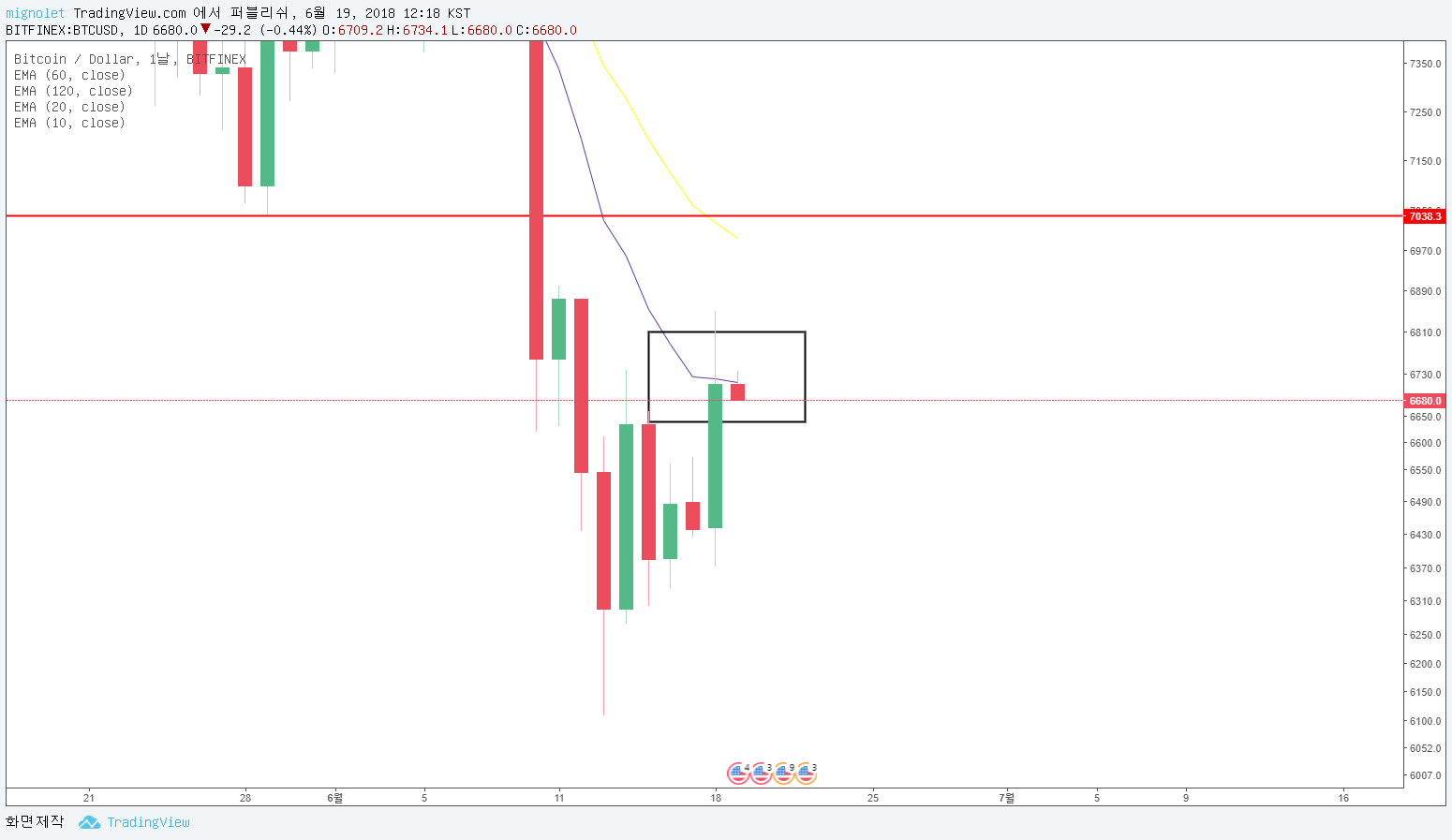 새로운추세가능성 열어두기 위해서는 적어도 7000구간을 한번에 돌파하는 강한 장대양봉이나타나야될것이다 언급을 드렸습니다.