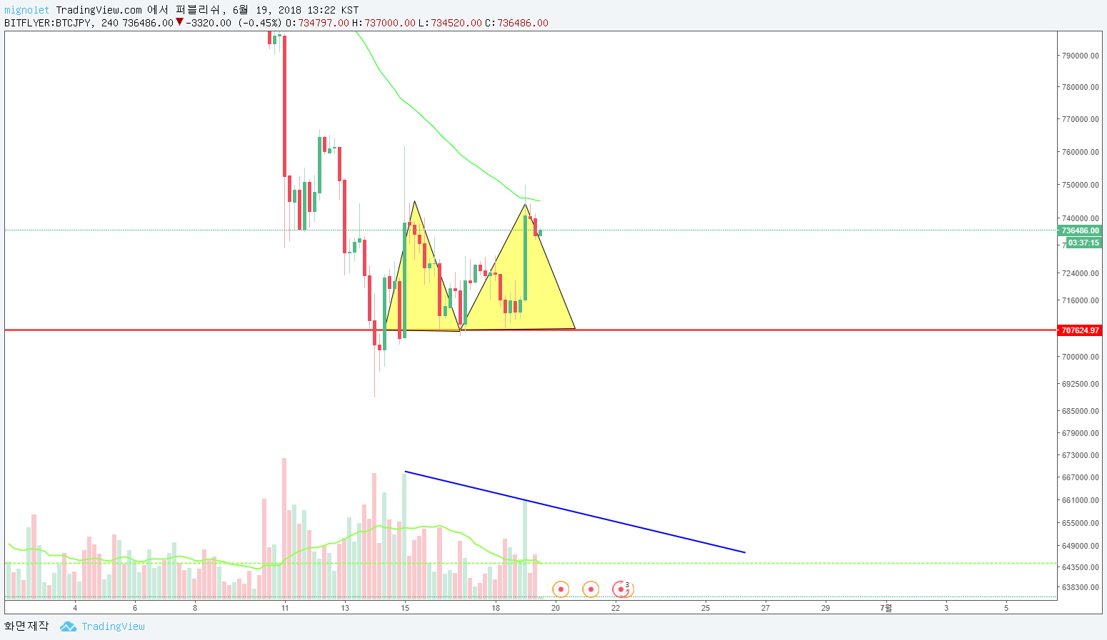 거래량이 계속해서 줄어든다면 헤드엔숄더 및 더블탑패턴의 가능성이 높을수 있겟으며