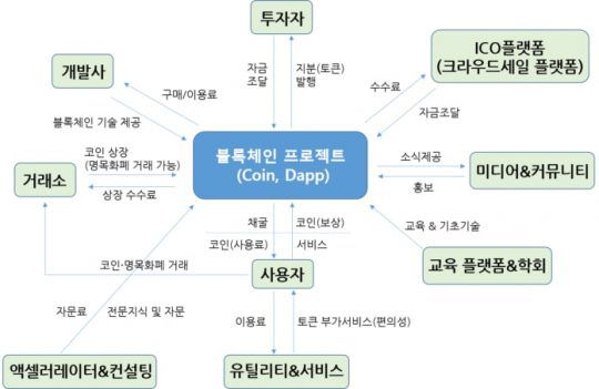단 프로젝트 초기 단계→ICO 단계→서비스 상용화 단계 등 글에서 활용한 시나리오는 하나의 예시에 불과하며 실제로 각각의 프로젝트가 거쳐 가는 개발 단계 및 상호 작용하는 플레이어는 다양하다. 예를 들면 ICO를 마무리한 후에 토큰 이코노미 구조를 일부 수정하는 경우도 있다. 상황이 이러니 본문에서 소개한 플레이어들의 역할과 종류도 블록체인 생태계가 발전해감에 따라 점점 더 변화하고 다양해질 것임을 인지하기 바란다.