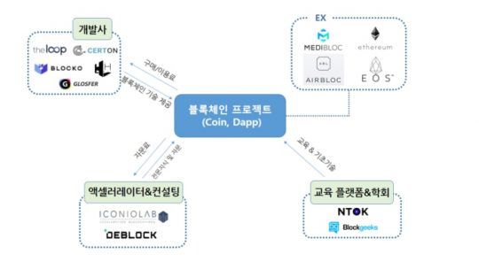 예를 들어 블록체인 개발사인 ‘더루프’는 자체 개발한 LFT 알고리즘에 기반한 루프체인 엔진 기술을 개발해 한국금융투자협회(KOFIA)가 주도하는 컨소시엄 등에 제공하며, 이를 금융권뿐 아니라 SCM, 게임 분야 등에 적용하는 방안에 집중해왔다. ‘헥슬란트’는 ICO 투자 플랫폼 토큰뱅크를 운영 중이며, 추가적으로 스마트컨트렉트, KYC, NPER 개발 자문 등 블록체인 개발을 진행해왔으며 DEX Wallet도 개발 중이다.