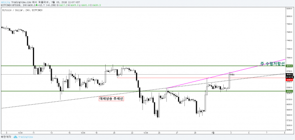 하지만 대세상승추세선을 넘겼다는데 의미를 줄수가 있을겁니다